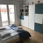 Staying at the spacious Traumwohnung Mit Grosser Dachterasse, guests can relax on a terrace at a distance of 7 km from Luftbrueckendenkmal Frankfurt. This apartment offers a private parking lot on site and modern comforts like Wi-Fi.